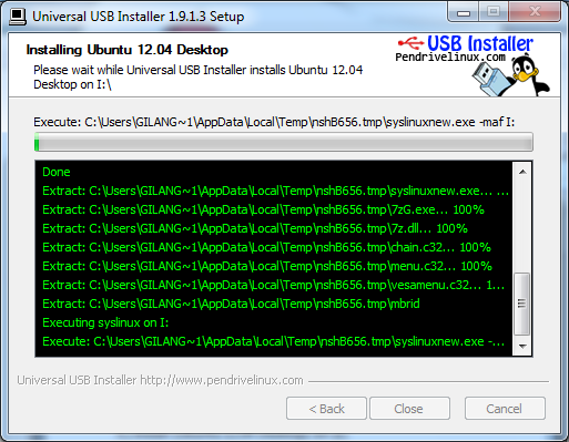 8. Klik close untuk mengakhiri, dan proses pembuatan bootable sudah selesai, untuk mencobanya silahkan restart komputer / laptop sobat untuk mencobanya.. dan pastikan pada bios sudah tersetting sebagaimana mestinya.